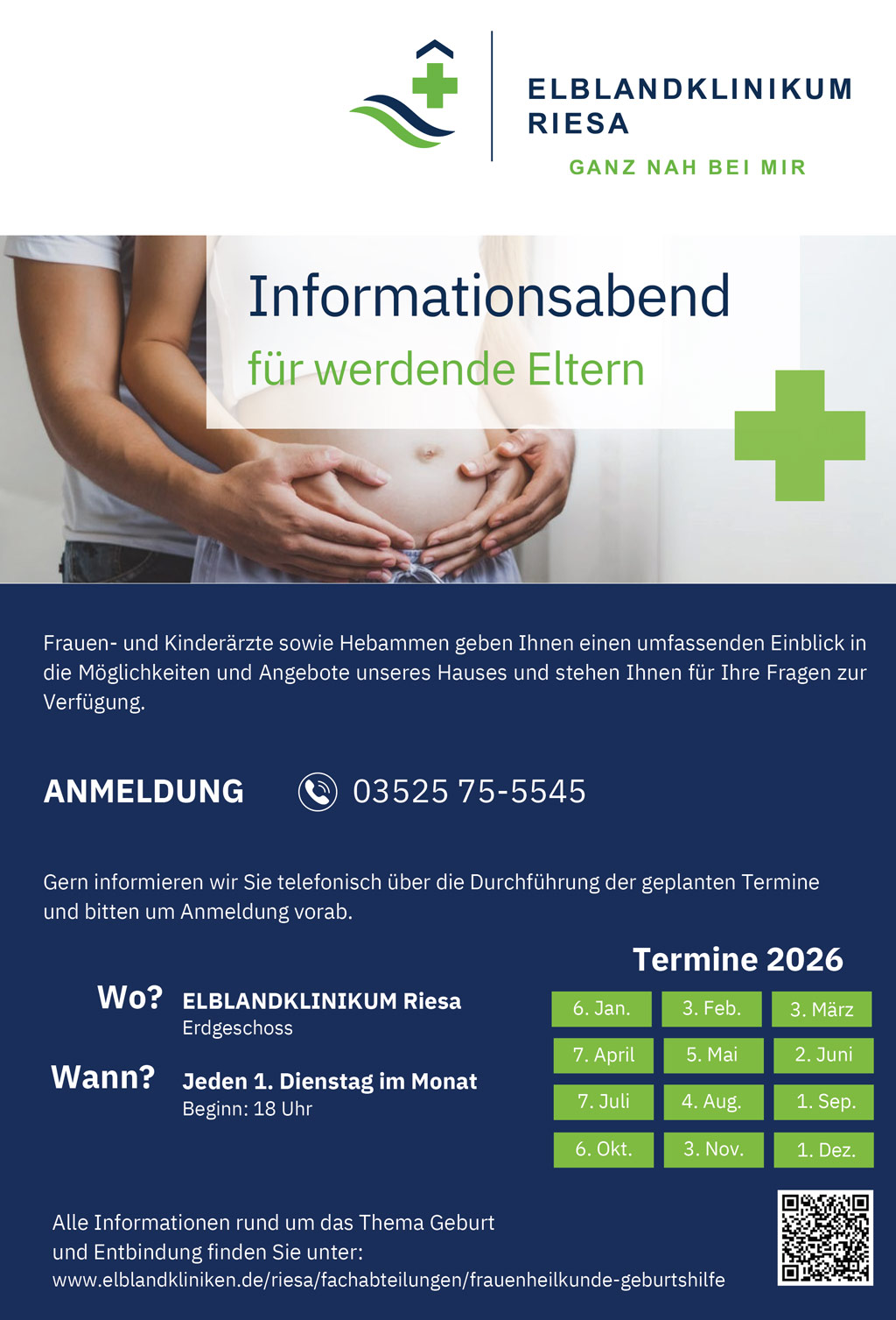 Die Fachabteilung Geburtshilfe am ELBLANDKLINIKUM Riesa ist in enger Zusammenarbeit mit der Klinik für Kinder- und Jugendmedizin ein anerkanntes Zentrum für Risiko- und Frühgeburten.