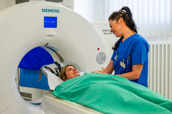 Unsere Radiologie ist mit zwei 64-Zeilen-Multislice-CT, einem kombinierten Durchleuchtungs- und Angiographiegerät, zwei digitalen Direktradiographiegeräten und einem Sonographiegerät ausgerüstet.