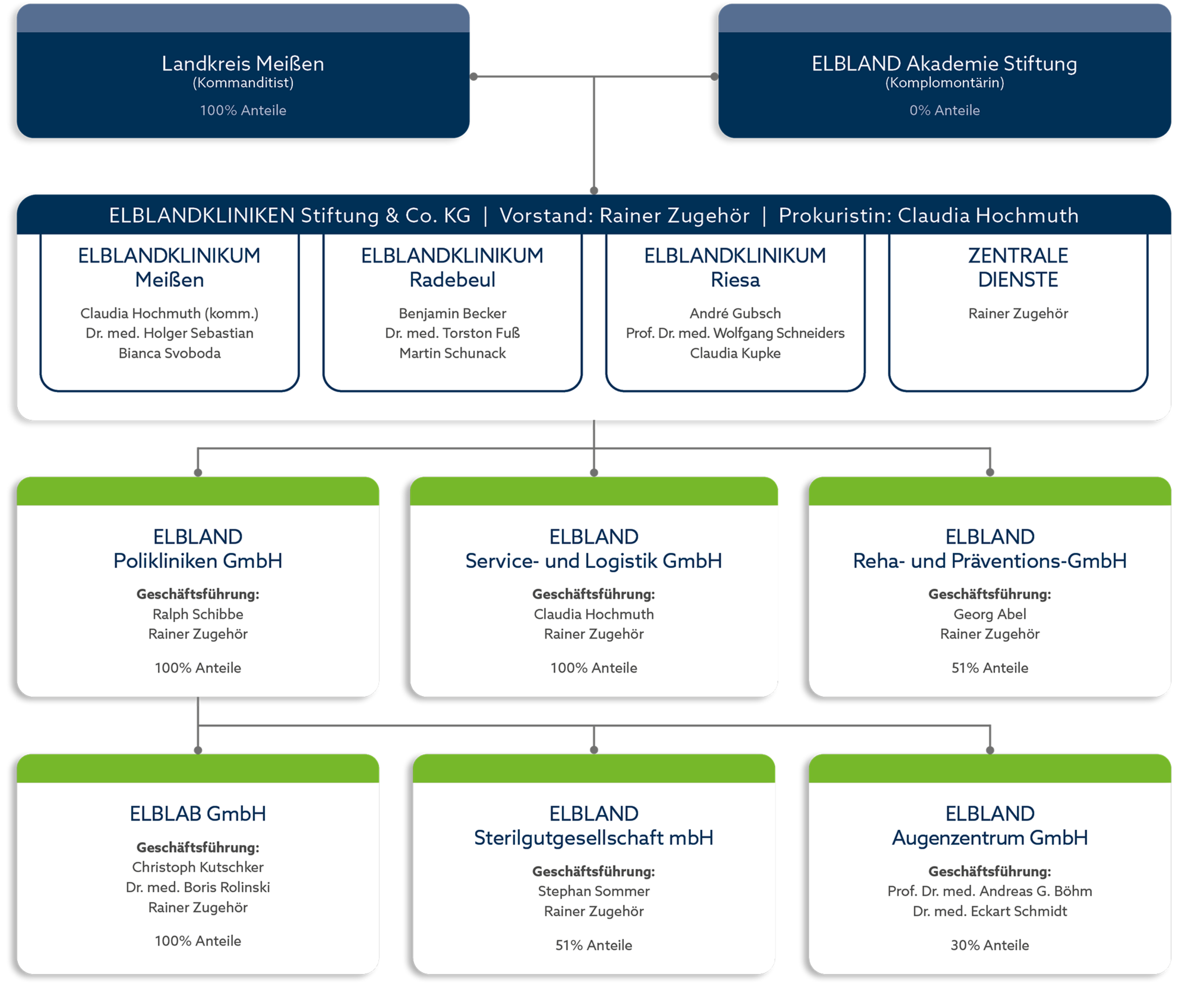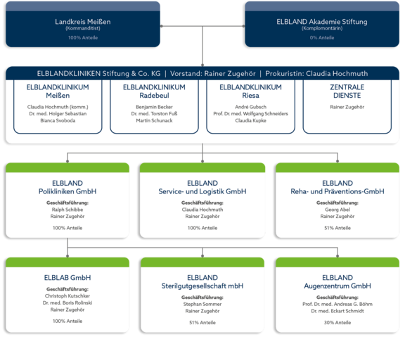Während sich bereits 2002 die Häuser Meißen und Radebeul zu den ELBLANDKLINIKEN zusammenschlossen, wurden Riesa und Großenhain 2007 zu einem Plankrankenhaus zusammengeführt. Seit April 2008 bilden alle vier Häuser gemeinsam die heutige ELBLANDKLINIKEN-Gruppe.